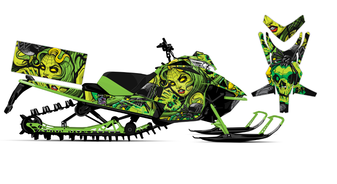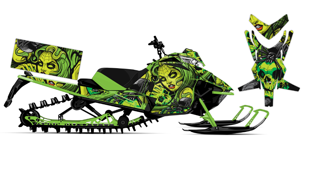 We've taken Arctic Cat Mountain Alpha, Riot, Blast, ZR, (+ other models) snowmobile wrap designs a step further with our innovative color customizer tool and easy, intuitive order process. Let your inner creativity come out as you design a cool black widow spider wrap of your own!