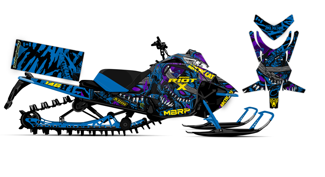 We've taken Arctic Cat Mountain Alpha, Riot, Blast, ZR, (+ other models) snowmobile wrap designs a step further with our innovative color customizer tool and easy, intuitive order process. Let your inner creativity come out as you design a cool grungy monster wrap of your own!