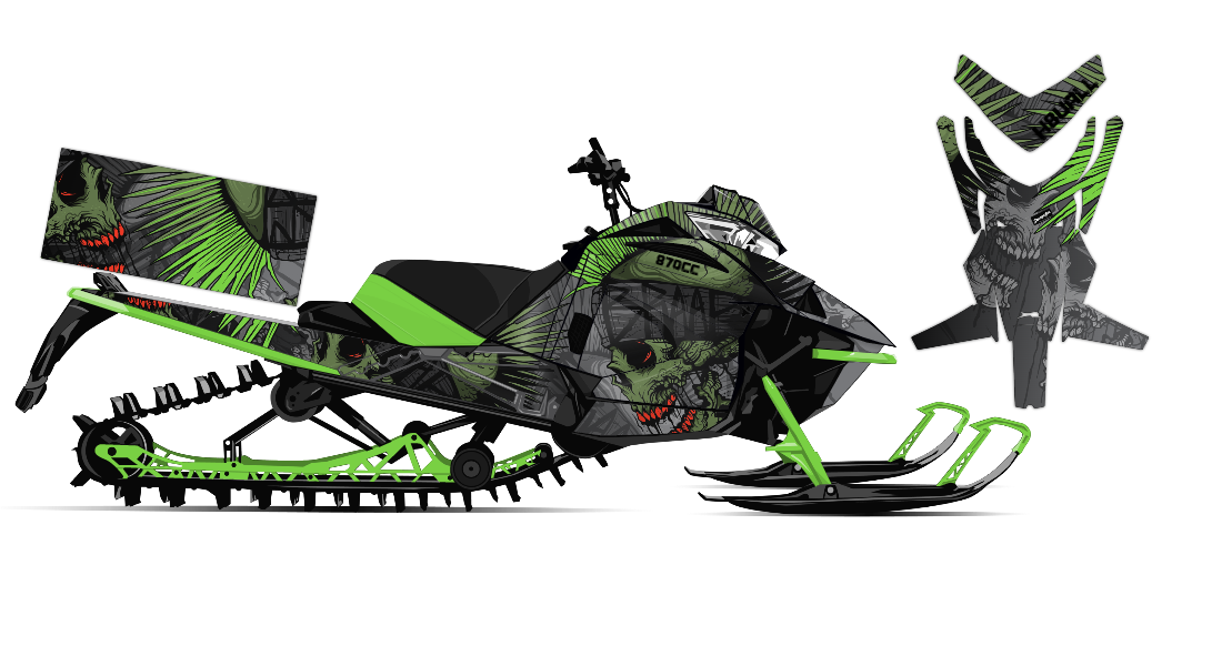 We've taken Arctic Cat Mountain Alpha, Riot, Blast, ZR, (+ other models) snowmobile wrap designs a step further with our innovative color customizer tool and easy, intuitive order process. Let your inner creativity come out as you design a cool skull wrap of your own!