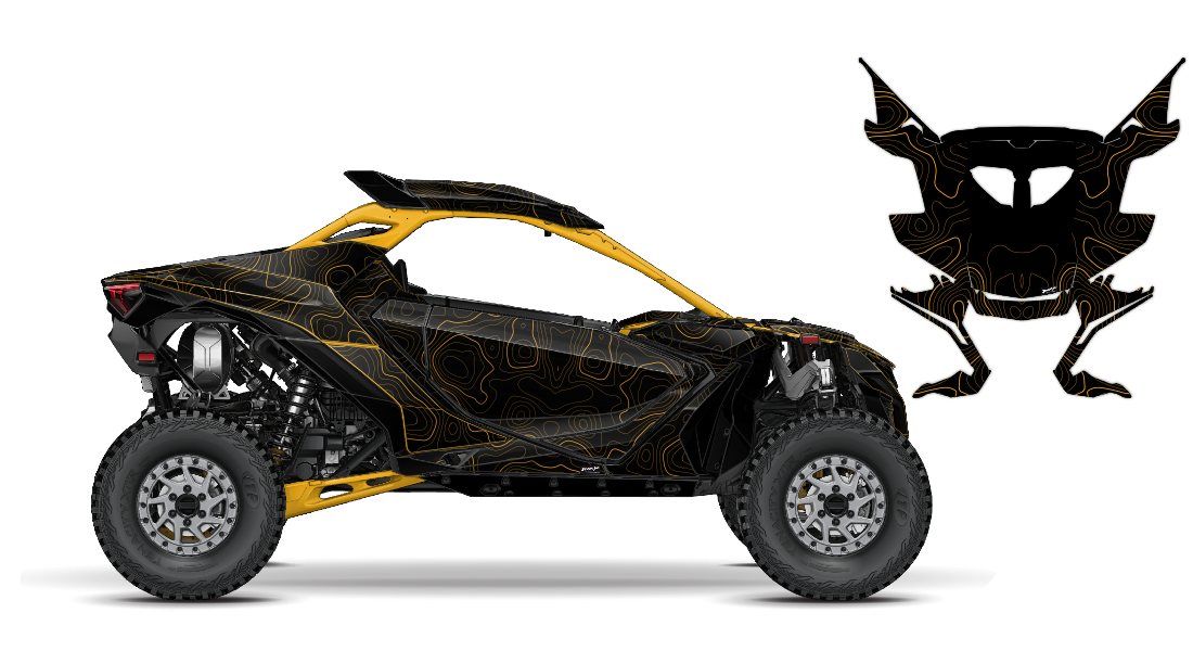 We have taken the Can-Am Maverick R wrap designs a step further with our innovative wrap customizer tool. Let your inner creativity come out as you create cool UTV WRAPS of your own like this premium topo lines design theme!