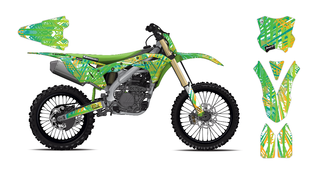 We have taken Kawasaki dirt bike graphics (KX, KLX, KLR & all models) a step further with our innovative wrap customizer tool. Let your inner creativity come out as you create a cool design wrap of your own!