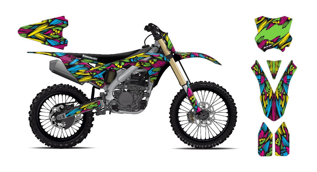 We have taken Kawasaki dirt bike graphics (KX, KLX, KLR & all models) a step further with our innovative wrap customizer tool. Let your inner creativity come out as you create a cool design wrap of your own!