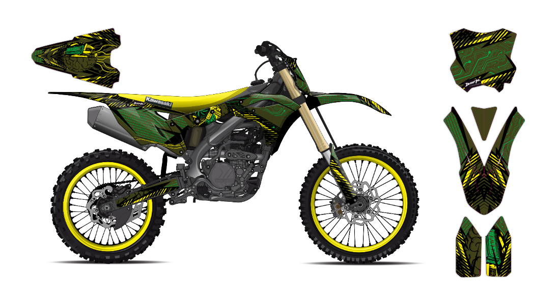 We have taken Kawasaki dirt bike graphics (KX, KLX, KLR & all models) a step further with our innovative wrap customizer tool. Let your inner creativity come out as you create a cool futuristic design wrap of your own!