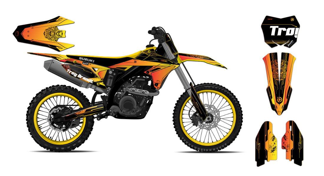We have taken Suzuki dirt bike graphics (RM, RMX, DR & all other models) a step further with our innovative wrap customizer tool. Let your inner creativity come out as you create a cool futuristic racing design wrap of your own!