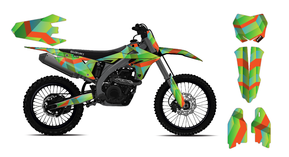 We have taken Suzuki dirt bike graphics (RM, RMX, DR & all other models) a step further with our innovative wrap customizer tool. Let your inner creativity come out as you create a cool design wrap of your own!