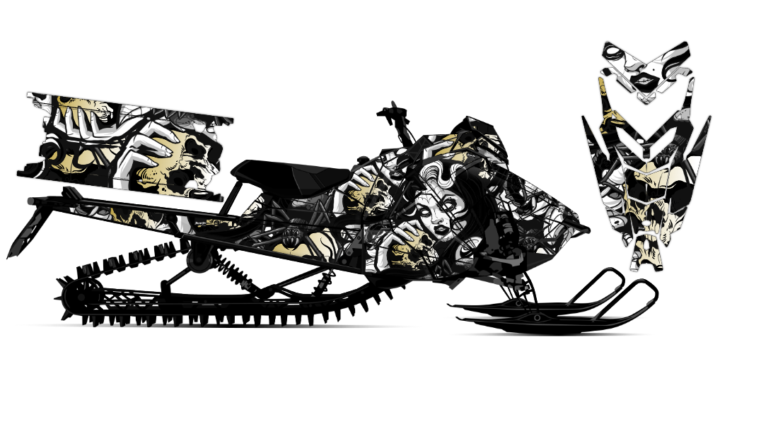 We've taken Polaris Axys and RMK (+ all other models) snowmobile wrap designs a step further with our innovative wrap customizer tool. Let your inner creativity come out as you design a cool skull black widow wrap of your own!