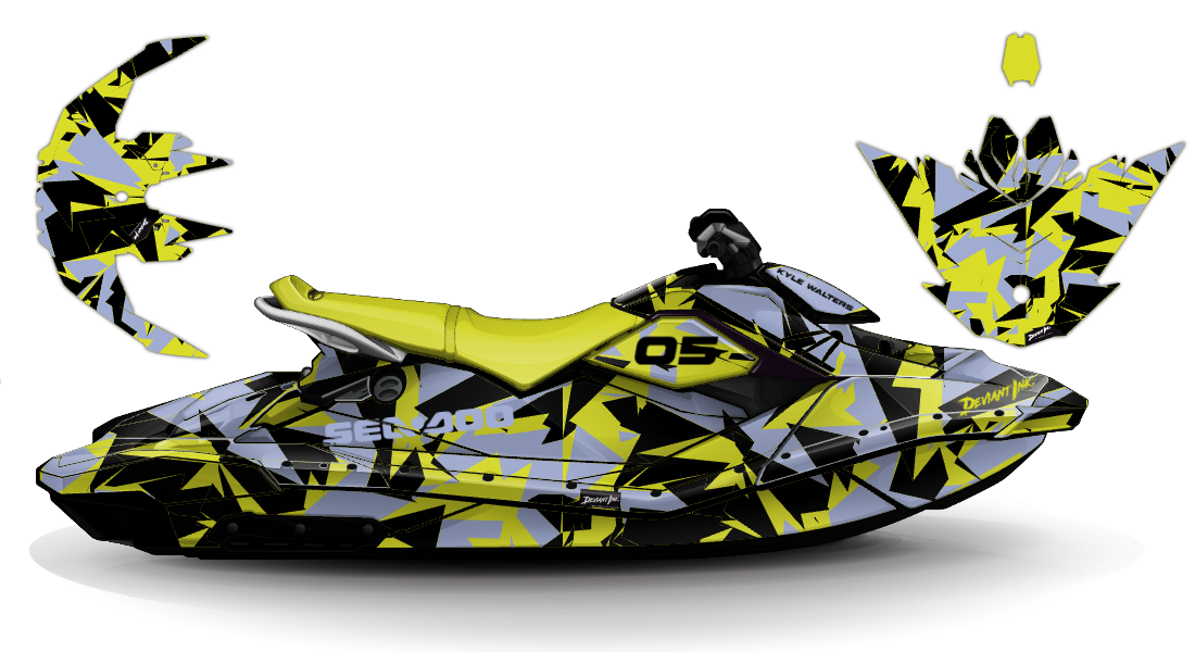 We have taken the Sea Doo Spark (Trixx) wrap designs a step further with our innovative wrap customizer tool. Let your inner creativity come out as you create cool JET SKI WRAPS of your own, like this premium geometric shapes design theme!
