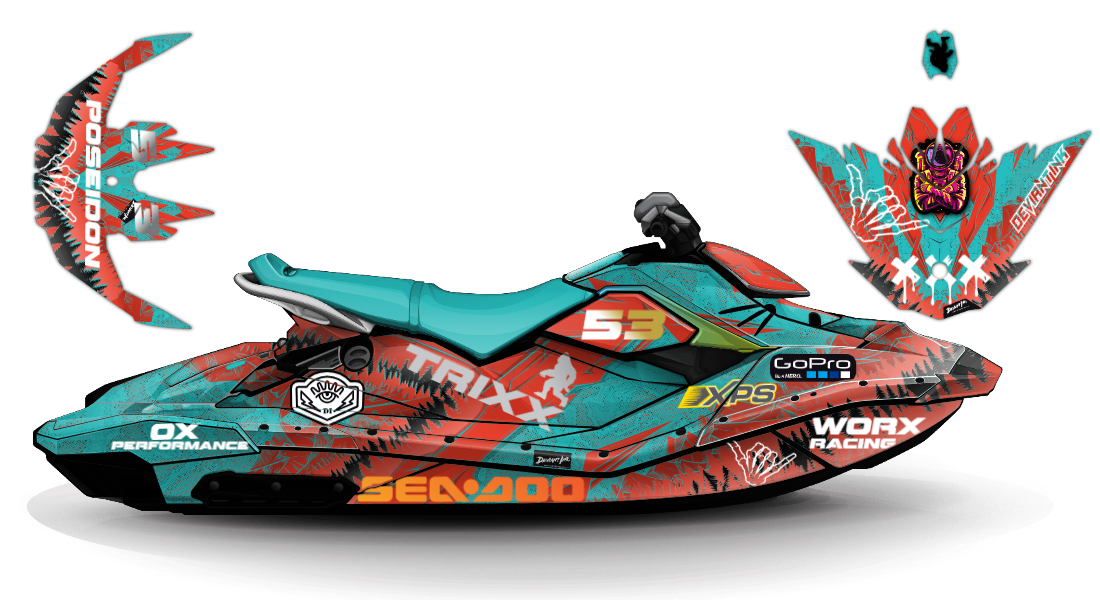 We have taken the Sea Doo Spark (Trixx) wrap designs a step further with our innovative wrap customizer tool. Let your inner creativity come out as you create cool JET SKI WRAPS of your own, like this premium geometric shapes design theme!