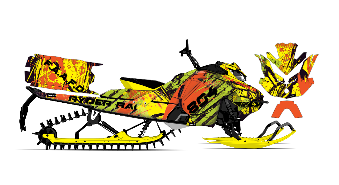 We have taken Ski-Doo Rev Gen4 (Summit, Freeride, Renegade, Backcountry, MXZ, and all other models dating back to the early 2000's) snowmobile wrap designs a step further with our innovative wrap customizer tool. Let your inner creativity come out as you create a cool grungy racing design wrap of your own!
