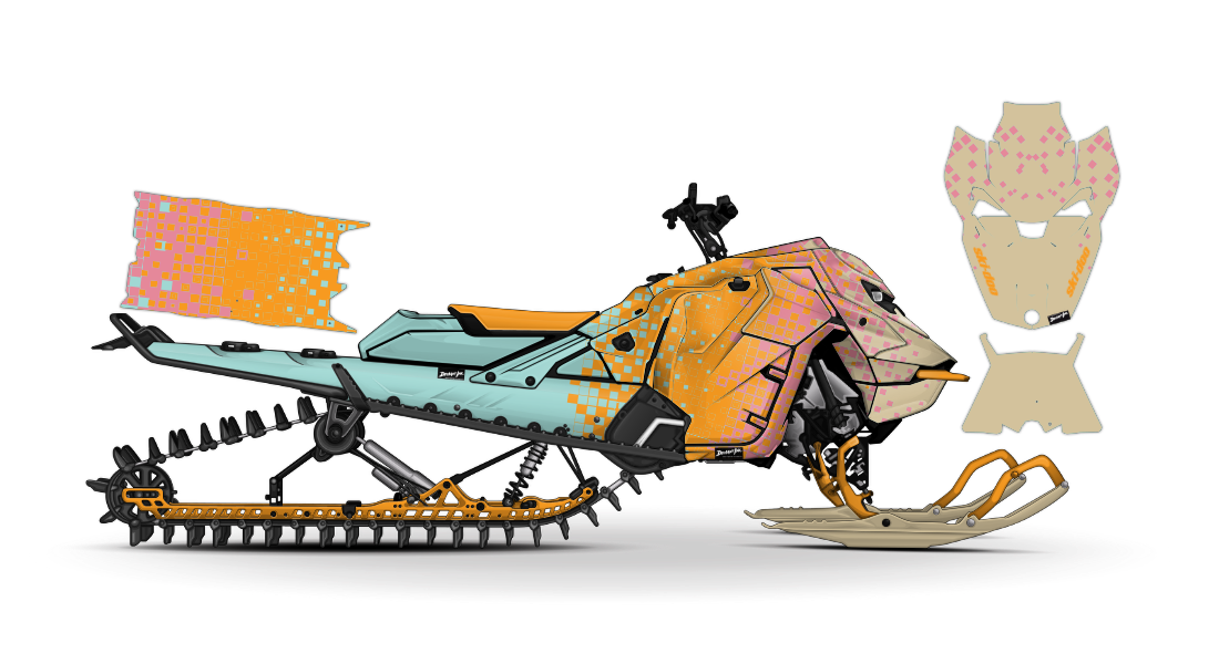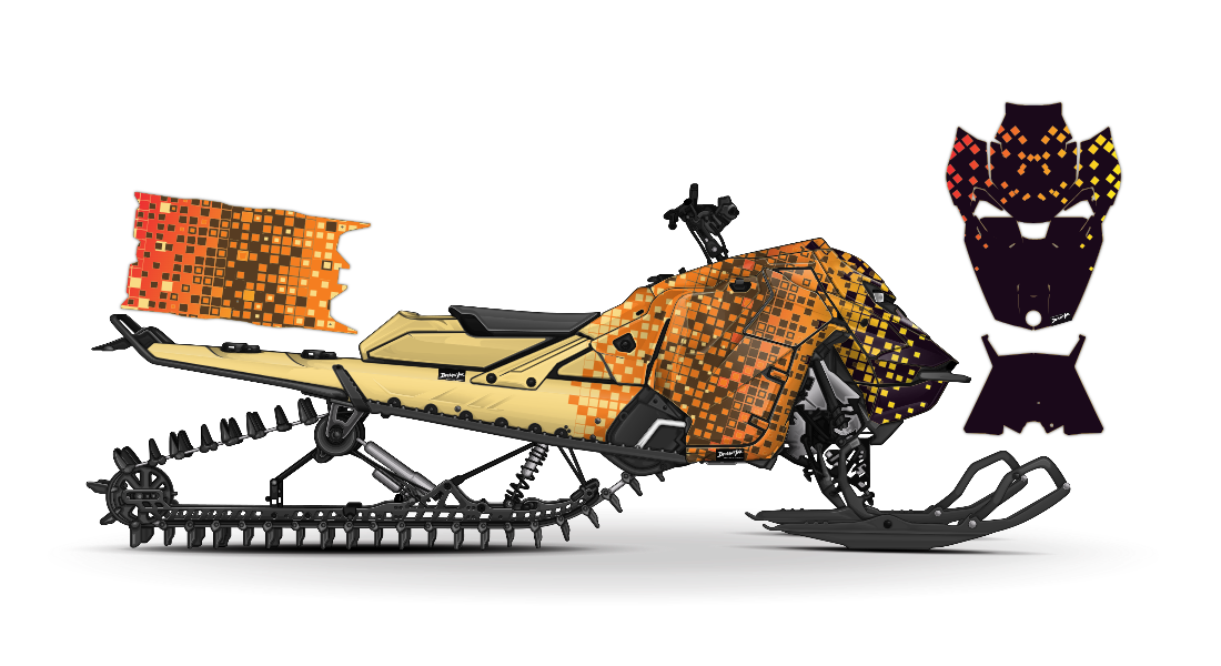 We have taken Ski-Doo Rev Gen5 (Summit, Turbo R Freeride, Renegade, Backcountry, MXZ, and all other models) snowmobile wraps designs a step further with our innovative wrap customizer tool. Let your inner creativity come out as you create a cool geometric squares design of your own!