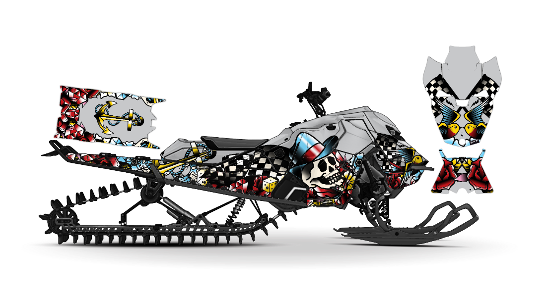We have taken Ski-Doo Rev Gen5 (Summit, Freeride, Renegade, Backcountry, MXZ, and all other models) snowmobile wraps designs a step further with our innovative wrap customizer tool. Let your inner creativity come out as you create a cool tattoo skull design of your own!