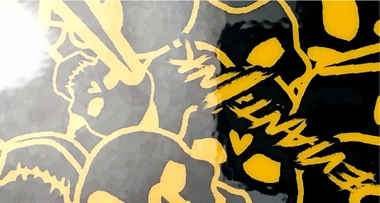 Here, the production team runs the wrap through two machines to get it laminated and cut.