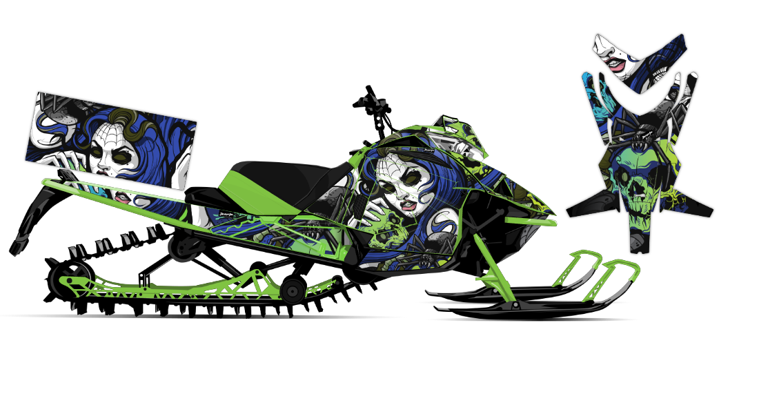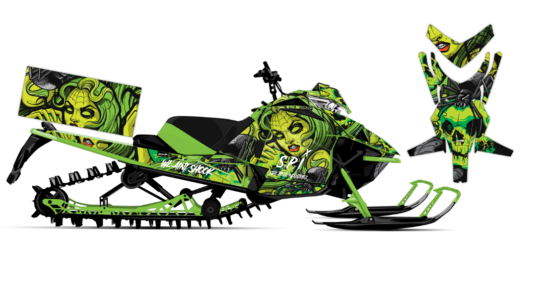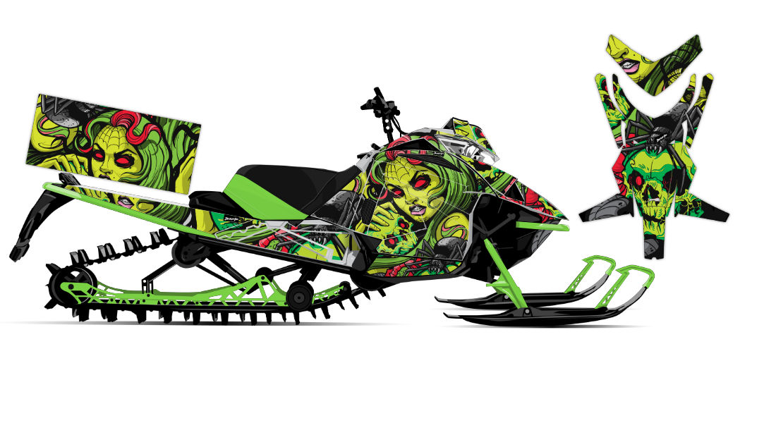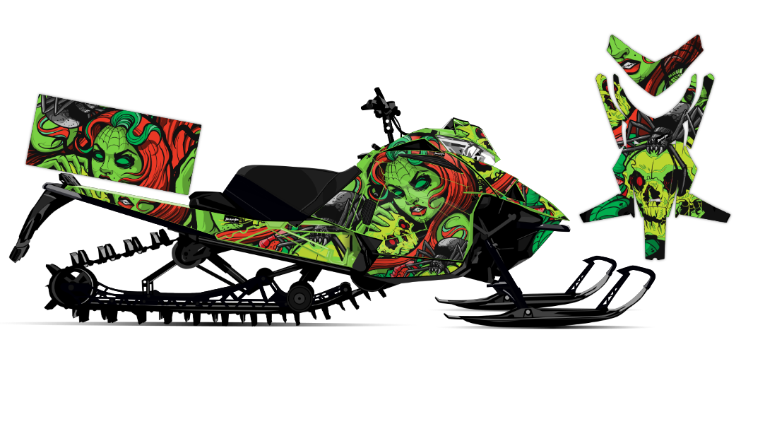 We've taken Arctic Cat Mountain Alpha, Riot, Blast, ZR, (+ other models) snowmobile wrap designs a step further with our innovative color customizer tool and easy, intuitive order process. Let your inner creativity come out as you design a cool black widow spider wrap of your own!