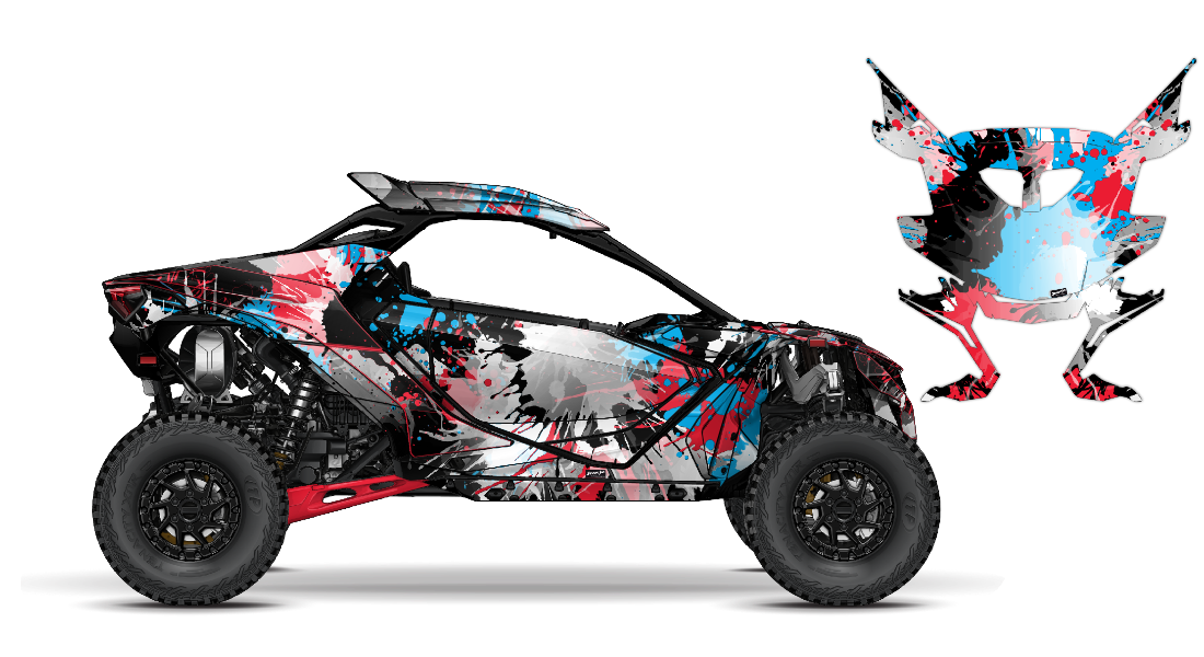 We have taken the Can-Am Maverick R wrap designs a step further with our innovative wrap customizer tool. Let your inner creativity come out as you create cool UTV WRAPS of your own like this premium grungy paint splatter design theme!