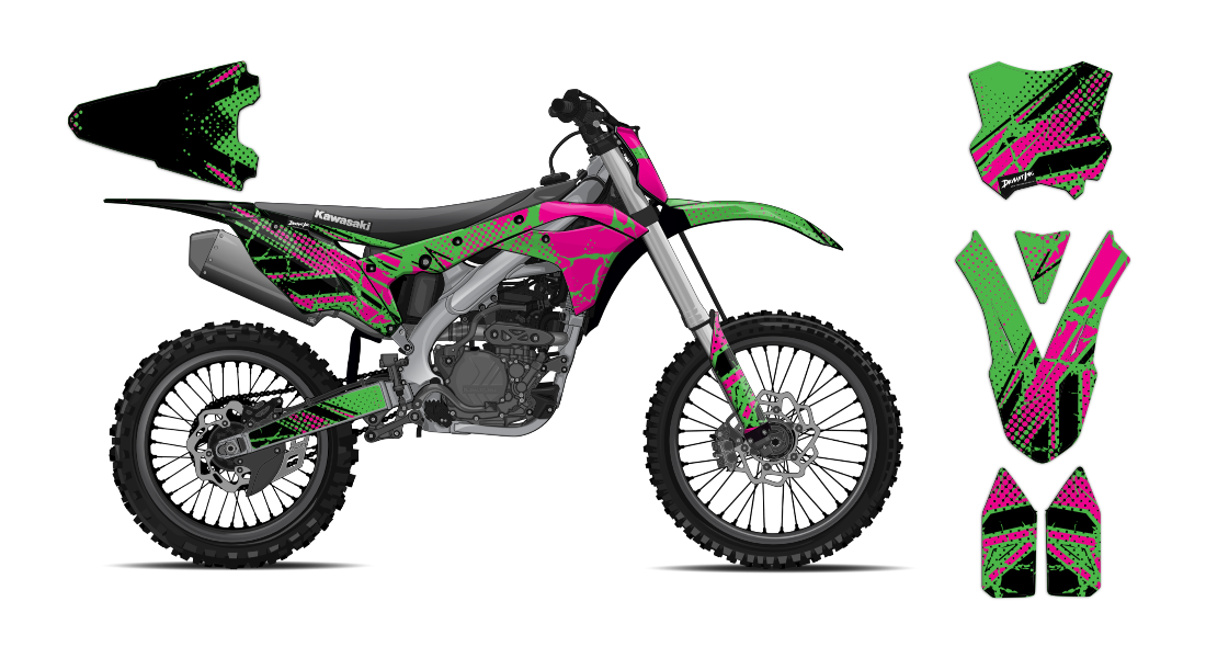 We have taken Kawasaki dirt bike graphics (KX, KLX, KLR & all models) a step further with our innovative wrap customizer tool. Let your inner creativity come out as you create a cool grungy lines design wrap of your own!