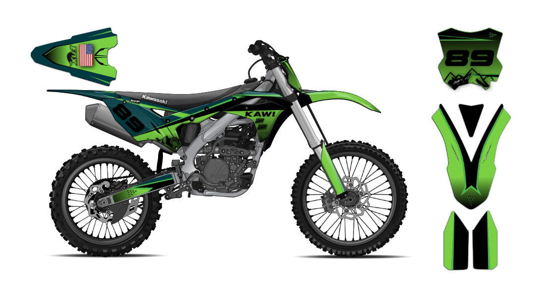 We have taken Kawasaki dirt bike graphics (KX, KLX, KLR & all models) a step further with our innovative wrap customizer tool. Let your inner creativity come out as you create a cool racing design wrap of your own!