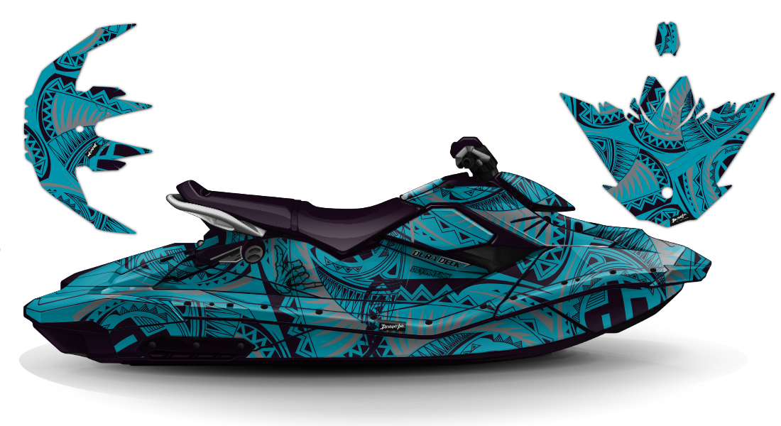 We have taken the Sea Doo Spark (Trixx) wrap designs a step further with our innovative wrap customizer tool. Let your inner creativity come out as you create cool JET SKI WRAPS of your own, like this premium polynesian pattern design theme!