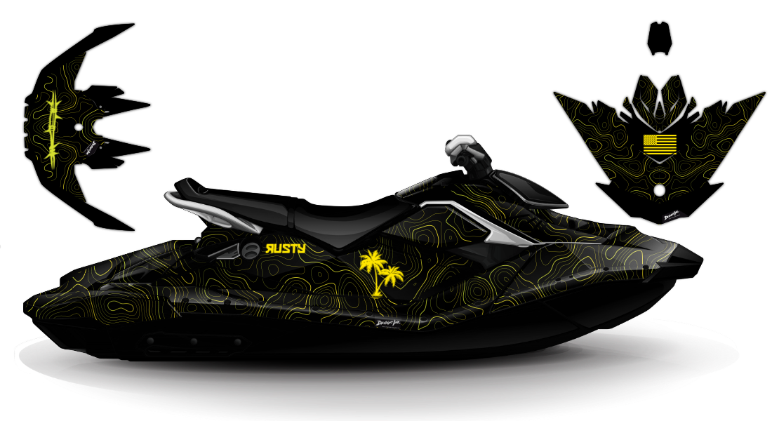 We have taken the Sea Doo Spark (Trixx) wrap designs a step further with our innovative wrap customizer tool. Let your inner creativity come out as you create cool JET SKI WRAPS of your own, like this premium topographic lines design theme!