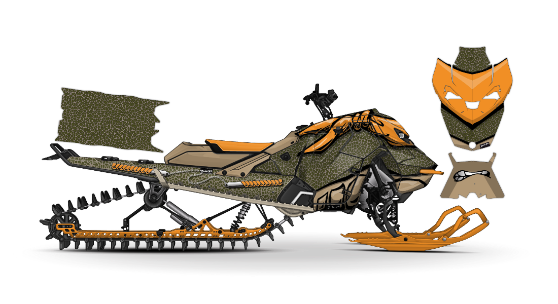 We have taken Ski-Doo Rev Gen5 (Summit, Turbo R Freeride, Renegade, Backcountry, MXZ, and all other models) snowmobile wraps designs a step further with our innovative wrap customizer tool. Let your inner creativity come out as you create a cool orange turtles wrap design of your own!