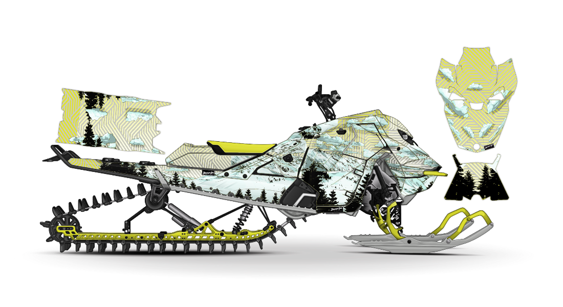 We have taken Ski-Doo Rev Gen5 (Summit, Freeride, Renegade, Backcountry, MXZ, and all other models) snowmobile wraps designs a step further with our innovative wrap customizer tool. Let your inner creativity come out as you create a cool trees and mountains design of your own!